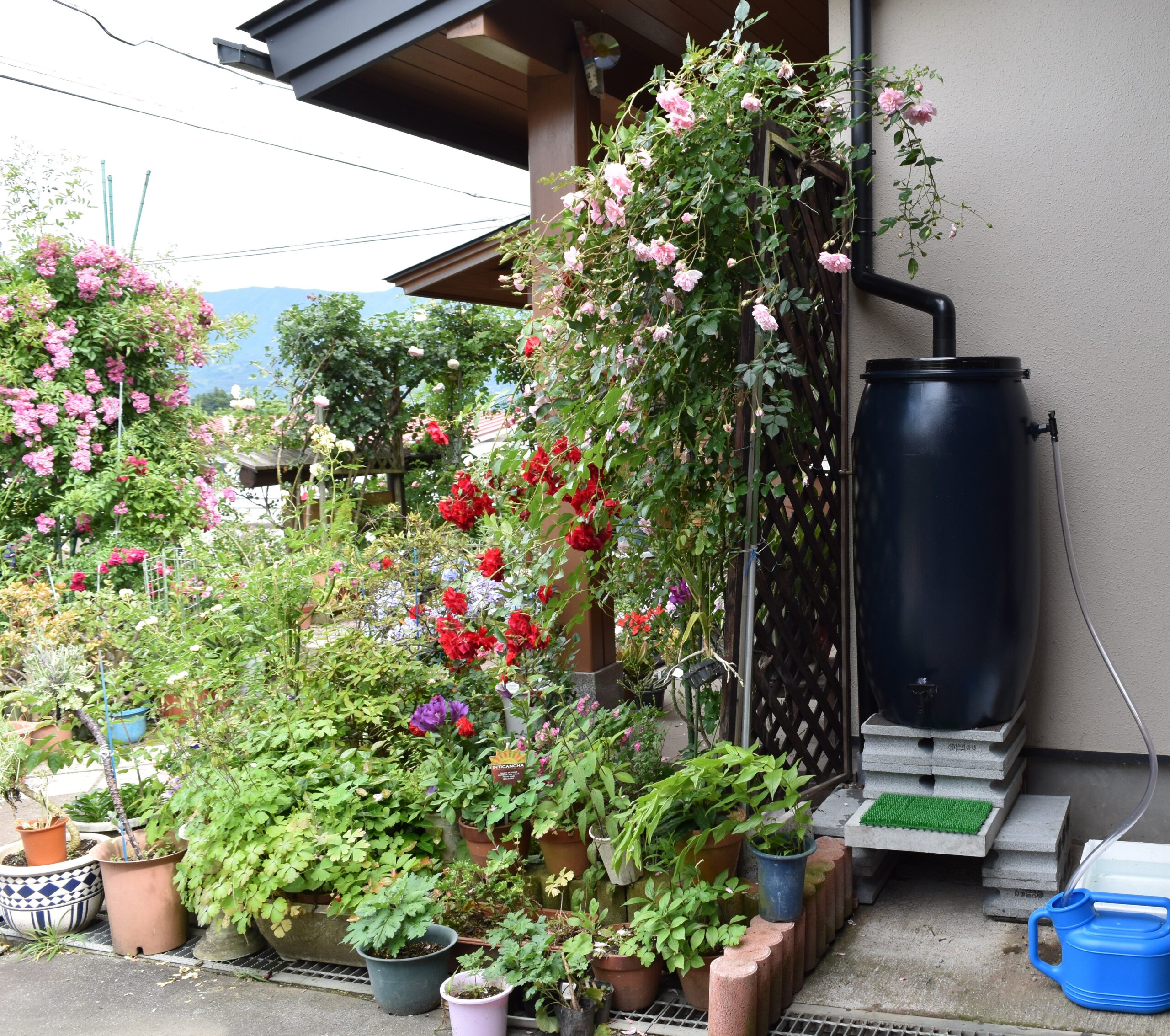 屋根に降った雨水を貯めて再利用することで、庭の散水や清掃、