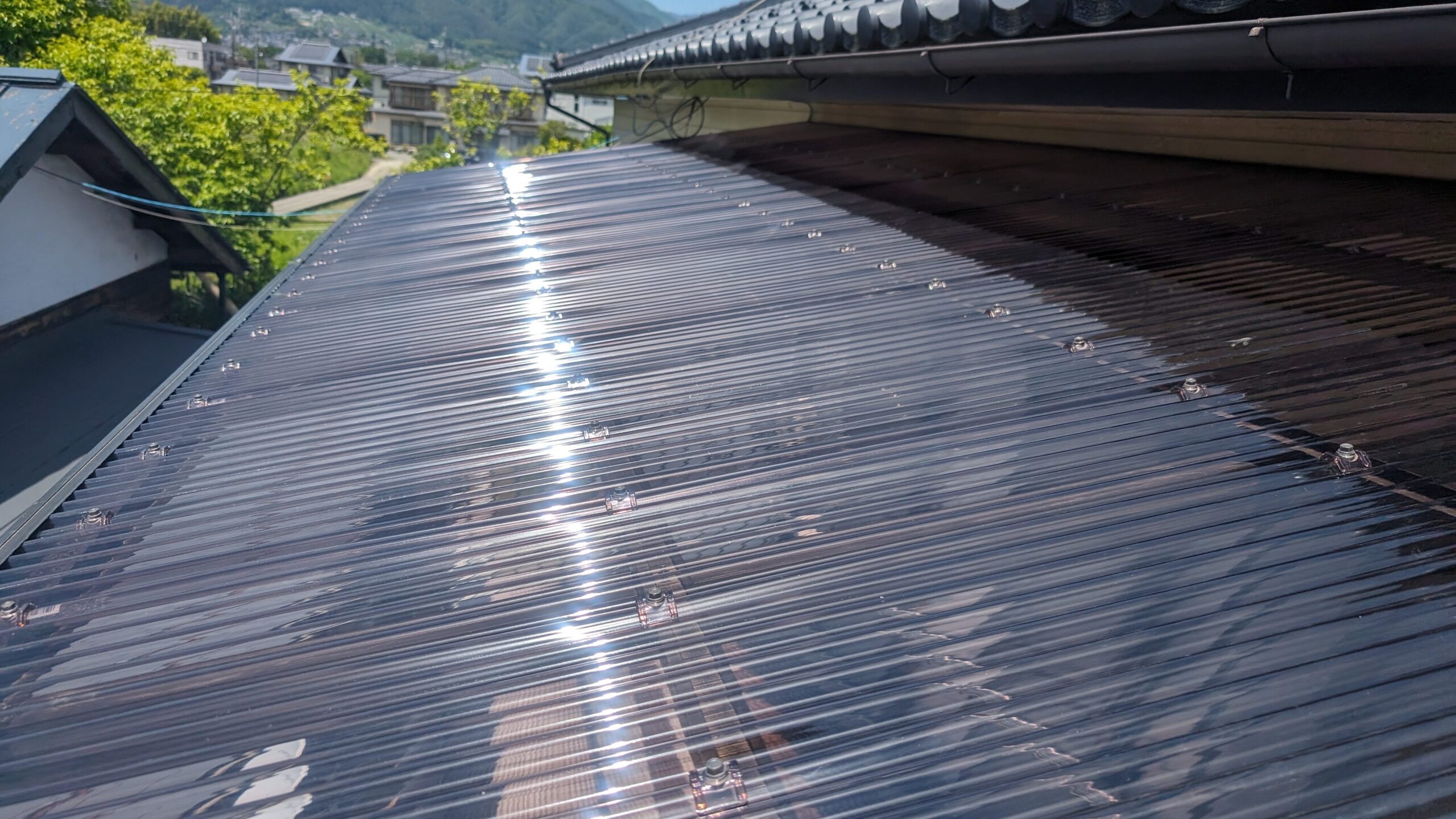 光を通す素材を使った屋根・外壁です。