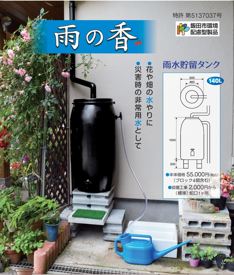 屋根に降った雨水を貯めて再利用することで、庭の散水や清掃、非常時の生活用水として活用できる設備です。